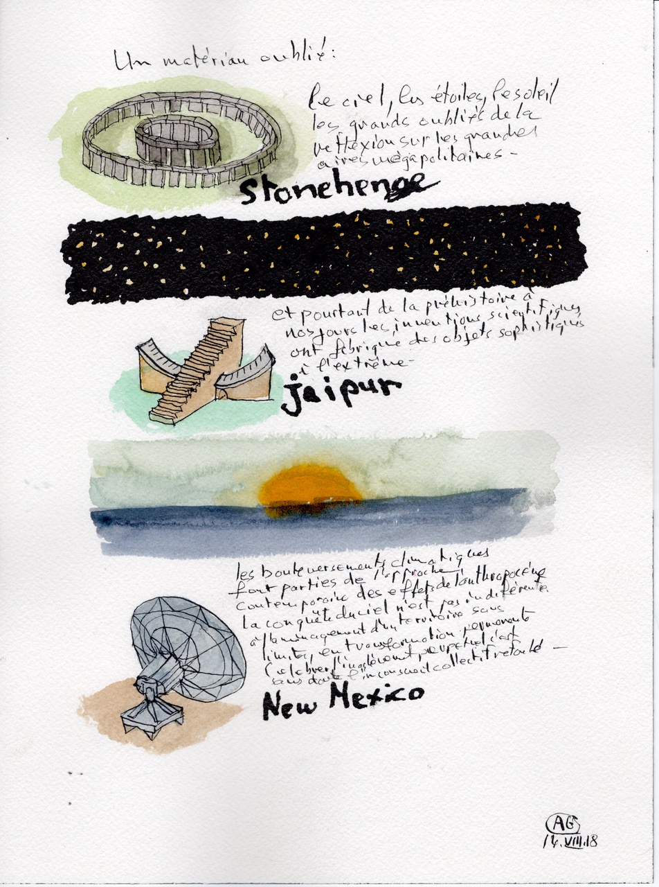 In his teaching as well as in his creative work, Antoine Grumbach explores the fields of linguistics, psychoanalysis, surrealism and situationism. Large scale, writing and drawing have always accompanied his “wandering”.