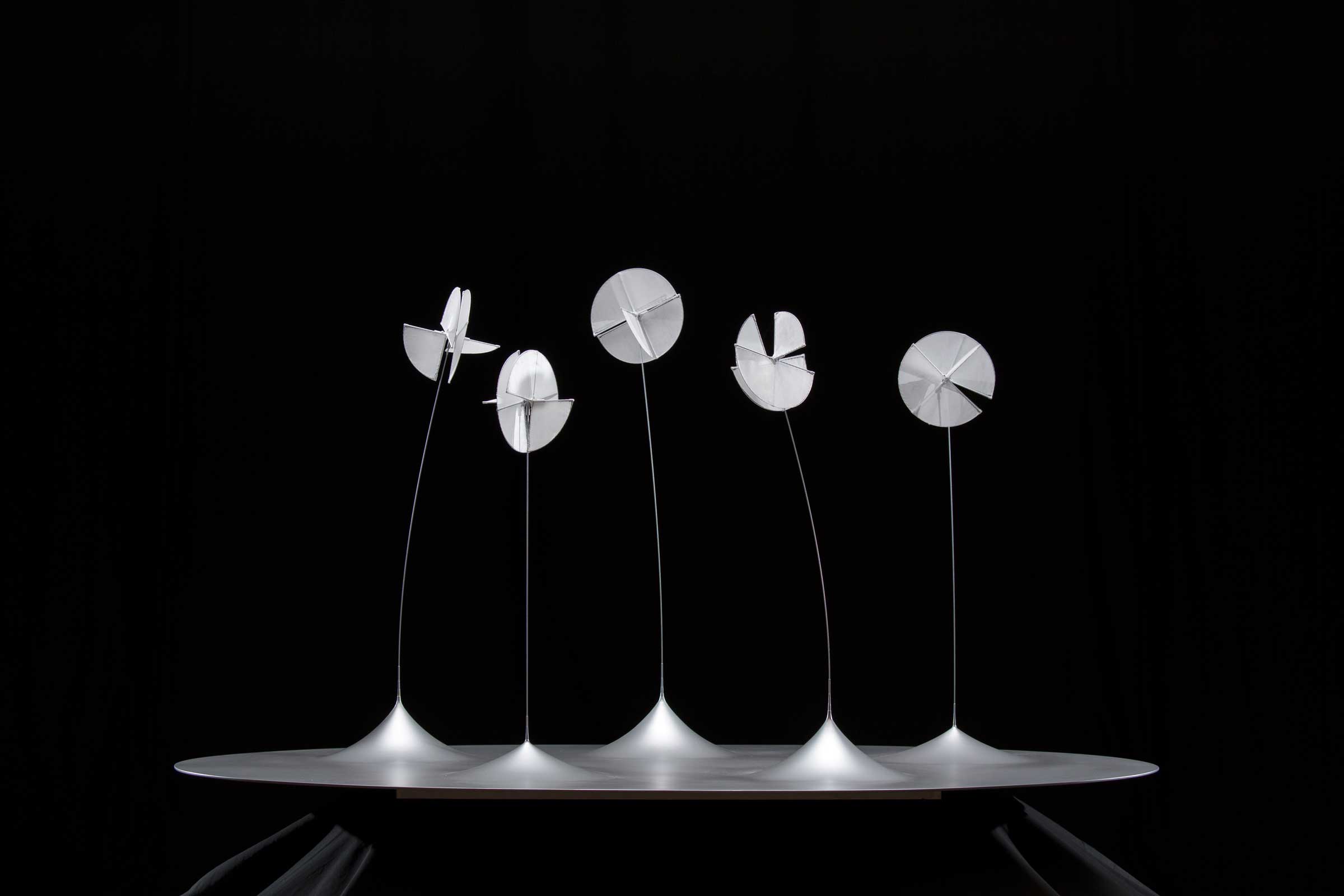 Sculpteur du vent, de l’eau et de la gravité, Susumu Shingu emprunte aux hautes technologies et aux talents de son époque pour créer des oeuvres en harmonie avec les rythmes secrets de la planète. Il a ainsi régulièrement collaboré avec des artistes aussi prestigieux que Renzo Piano, Tadao Ando, Issey Miyake, Jiři Kilián… L’art de Susumu Shingu ne pourrait exister sans le vent. Ses sculptures élégantes s’animent au moindre mouvement d’air et révèlent de la sorte la présence intangible mais omniprésente du souffle. Ce matériau « atmosphérique » qu’il sculpte souligne son rapport au monde, sa conscience écologique. Toute son œuvre est sous-tendue par cette recherche harmonieuse des rythmes et des vibrations de la nature.